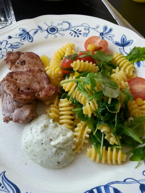 Då var femte rätten från Linas matkasse gjord. Den var supergod precis som de andra rätterna har varit. Idag var det fläskfile med en pastasallad och pestodressing. Är väldigt positivt överraskad av all mat och råvaror som vi fick. Ett jättefint recepthäfte som vi garanterat kommer att spara.